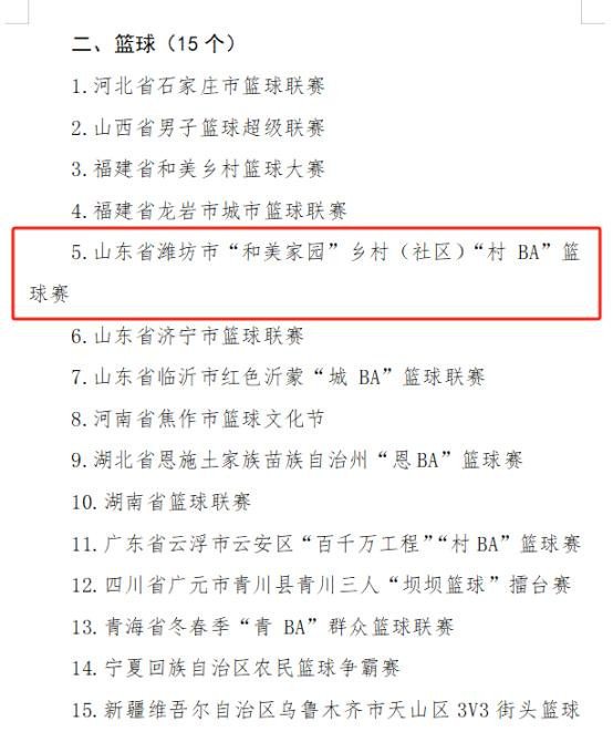 近日,国家体育总局公布2025年度全国群众“三大球”精品赛事案例名单,由中共潍坊市委宣传部、潍坊市体育局、潍坊市农业农村局、潍坊市商务局、潍坊市文化和旅游局、潍坊市体育总会共同主办的“和美家园”乡村(社区)“村BA”篮球赛成功入选。这一荣誉标志着潍坊市在探索基层体育赋能乡村振兴、推动全民健身与精神文明建设深度融合方面,走在了全国前列。